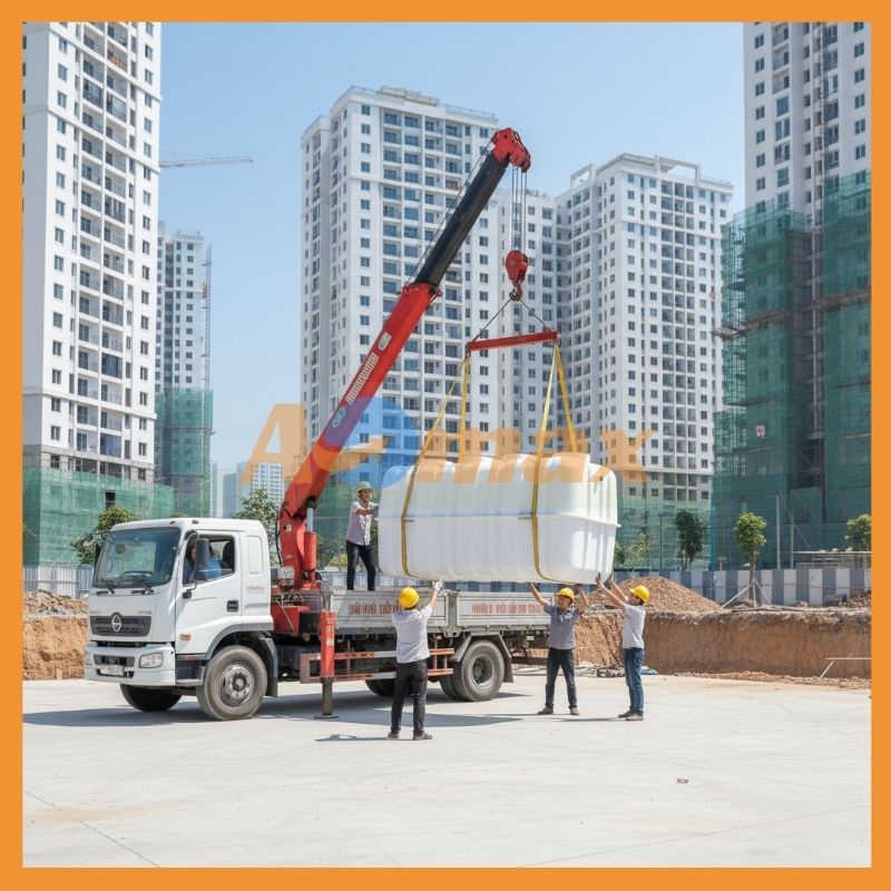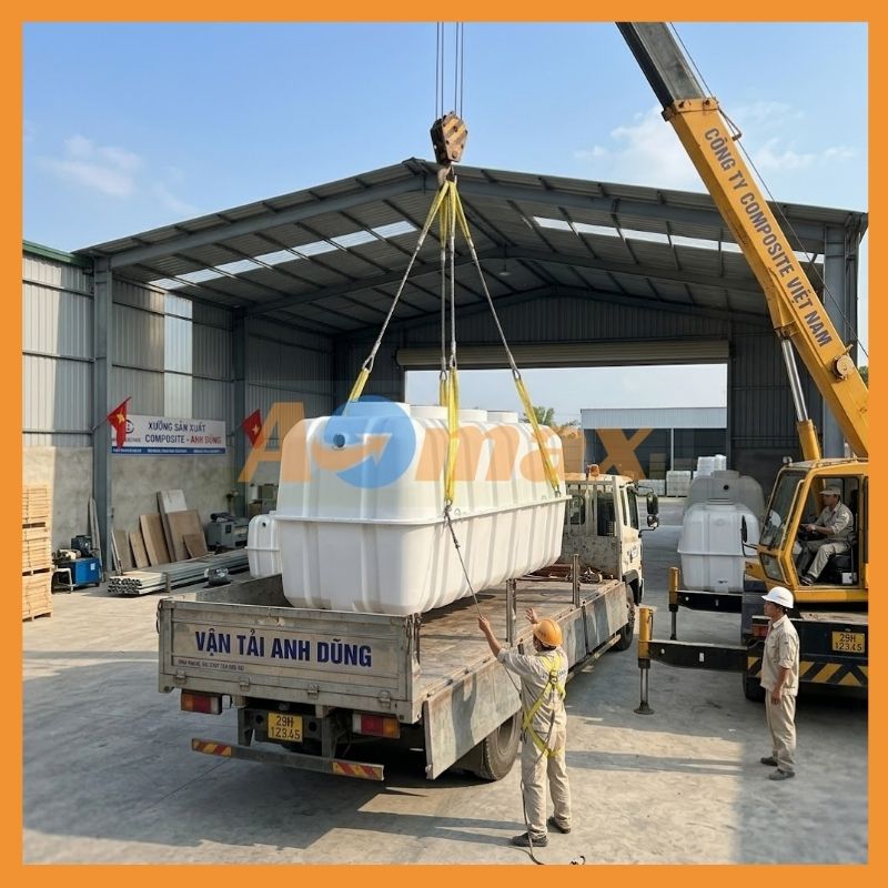 Chúng tôi thấu hiểu áp lực về tiến độ của các chủ thầu xây dựng. Vì vậy, hệ thống kho bãi rộng lớn của AOmax luôn đảm bảo nguồn hàng bể tự hoại Composite 8m3 có sẵn số lượng lớn. Đội ngũ logistics chuyên nghiệp sẵn sàng điều xe tải, xe cẩu giao nhanh hỏa tốc sản phẩm đến tận chân công trình trên khắp 63 tỉnh thành, đi kèm dịch vụ hỗ trợ kỹ thuật hướng dẫn lắp đặt tận tâm.