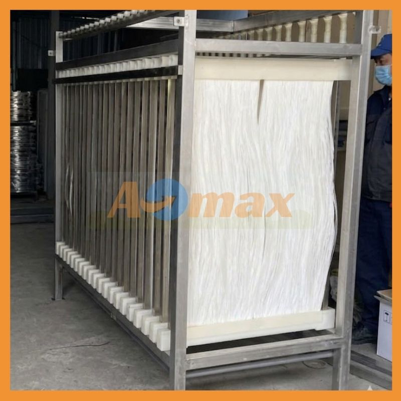 Đồng thời, với dải lưu lượng hút định mức đạt 6 ~ 40 L/m2/H, màng lọc MBR 8.8m2 đảm bảo duy trì công suất ổn định cho toàn bộ hệ thống. Mức lưu lượng này được tính toán kỹ lưỡng để vừa hút đủ lượng nước cần thiết, vừa tạo ra một lực cản nhẹ để chống lại hiện tượng nghẹt màng (Fouling), giúp hệ thống hoạt động liên tục, bền bỉ.